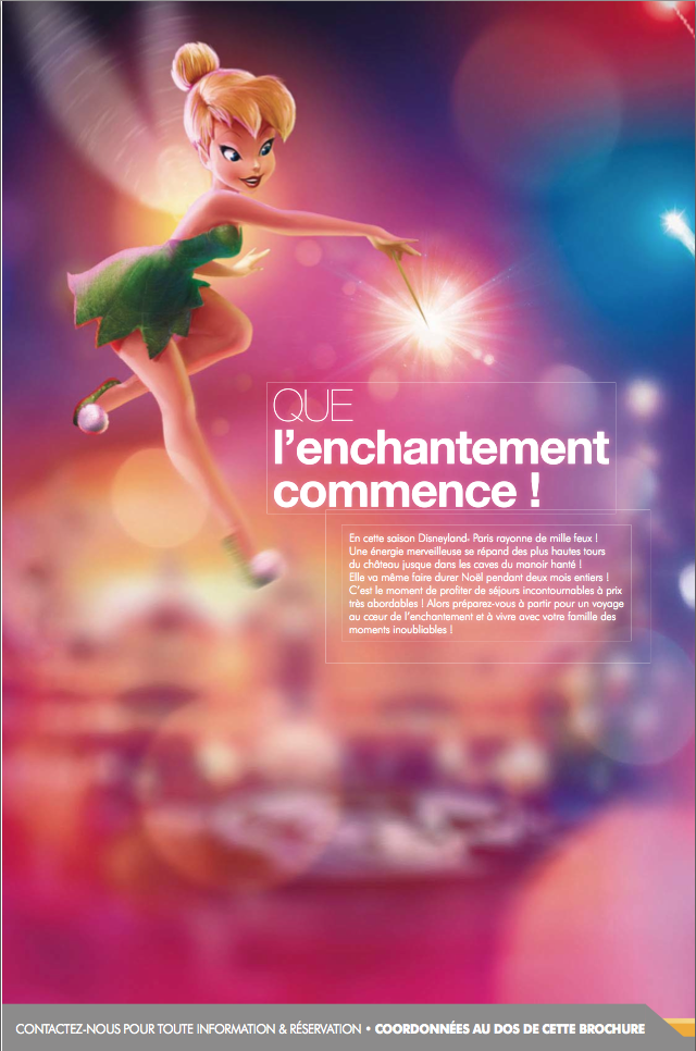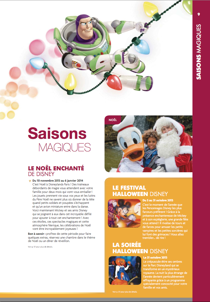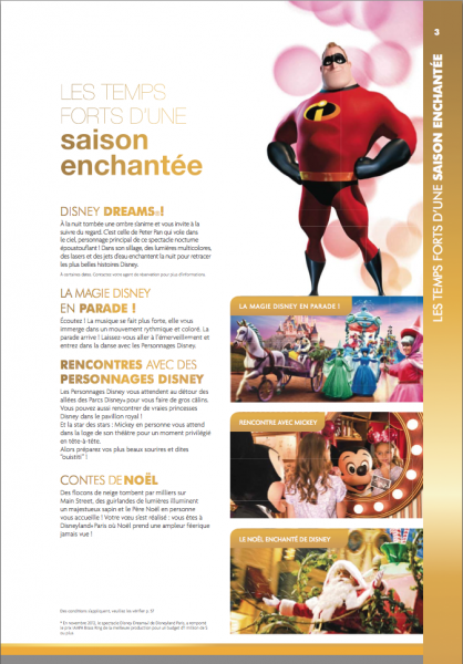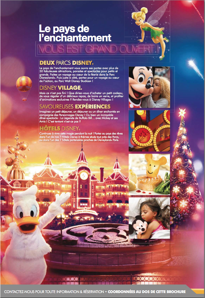 Rédaction des textes pour la brochure commerciale Hiver 2013 Disneyland Paris éditée à 300 000 exemplaires.